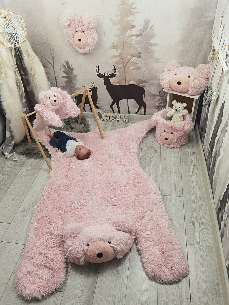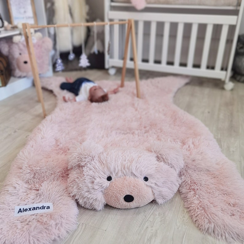 Thảm gấu hồng thủ công này sẽ biến phòng nursery của bé gái thành một khu rừng tuyệt vời với sự ấm áp và đáng yêu. Được làm từ vải minky shaggy siêu mềm, thảm mang đến một vẻ đẹp mộc mạc, duyên dáng, lý tưởng cho những món quà tặng bé hoặc cho các dịp baby shower. Thảm có thể được cá nhân hóa với tên của bé, tạo nên một món quà kỷ niệm độc đáo và đầy ý nghĩa.