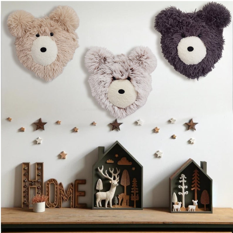 Thamboa Gấu Nhồi Bông Treo Tường Trang Trí Phòng Bé Phong Cách Woodland
