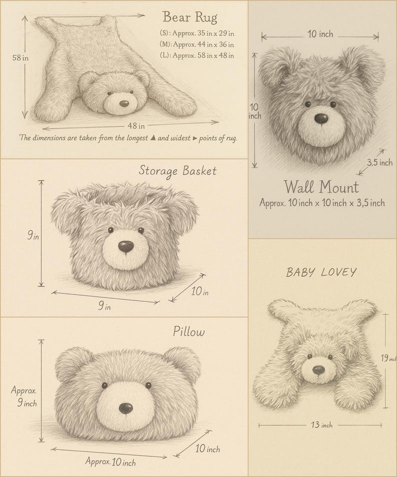 - Phụ kiện đồng bộ (tuỳ chọn): Gối gấu, giỏ đồ chơi, decor treo tường cùng chất liệu.
