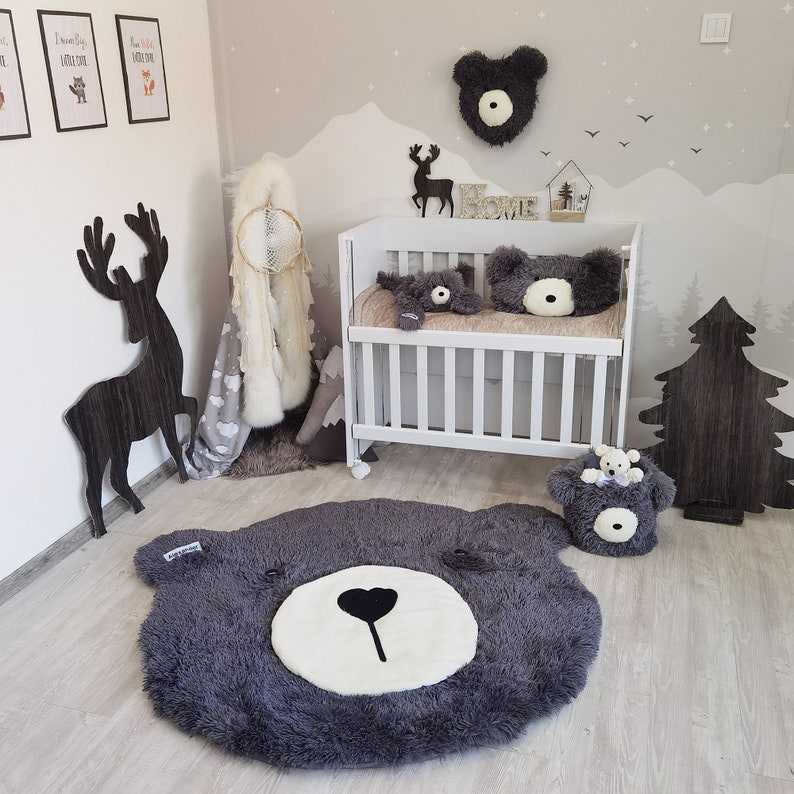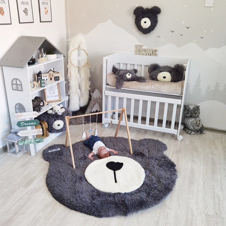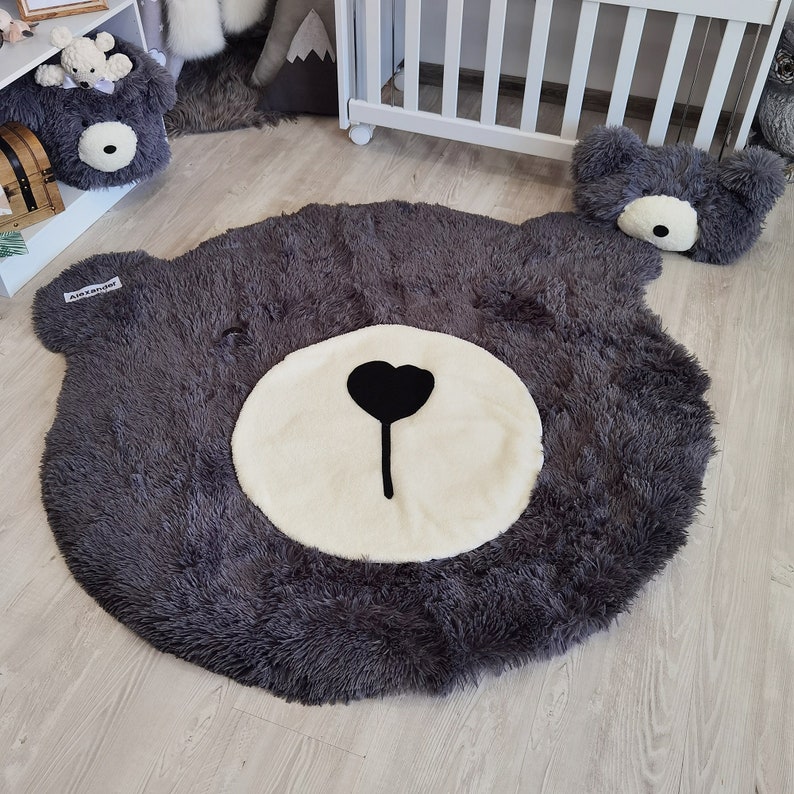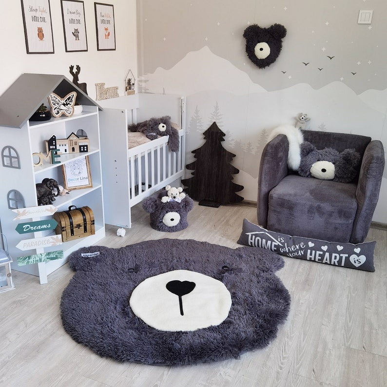 Thêm vẻ ấm áp woodland hiện đại cho phòng bé với Thamboa Thảm Chơi Hình Gấu Xám Đậm. Thiết kế mặt gấu tròn xinh, mũi tim kem nổi bật; bề mặt lông Minky siêu mềm cho bé thoải mái nằm sấp, bò chơi hay chụp ảnh milestone.