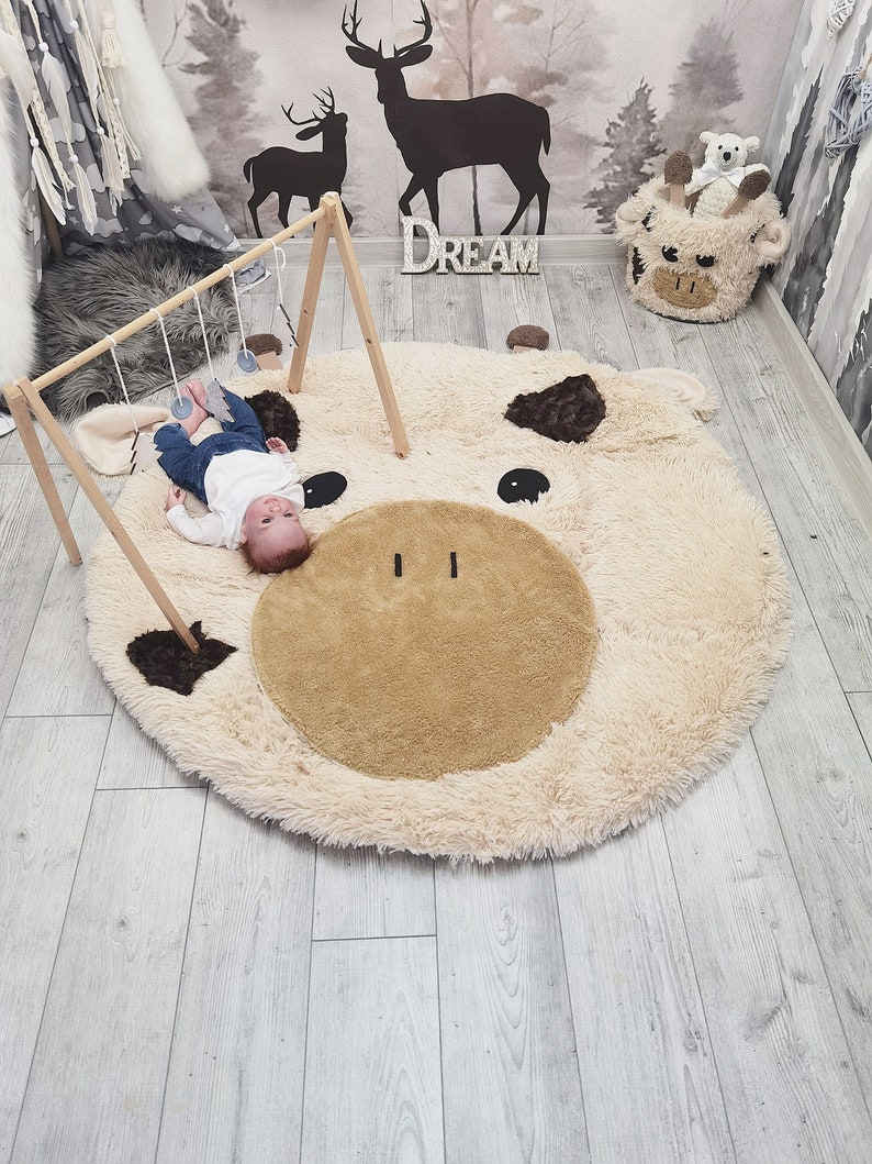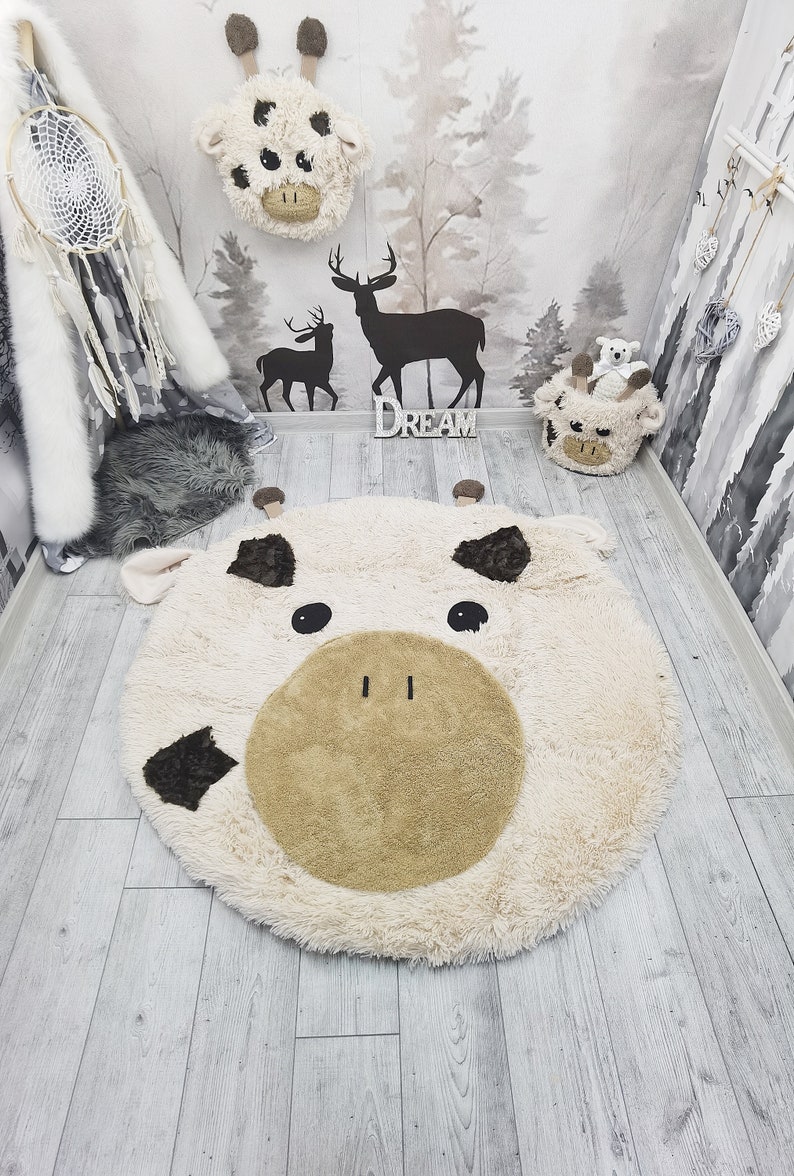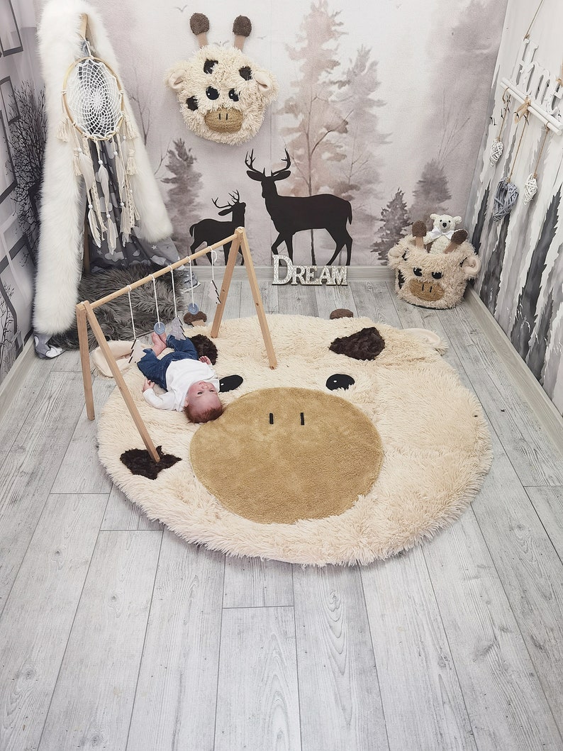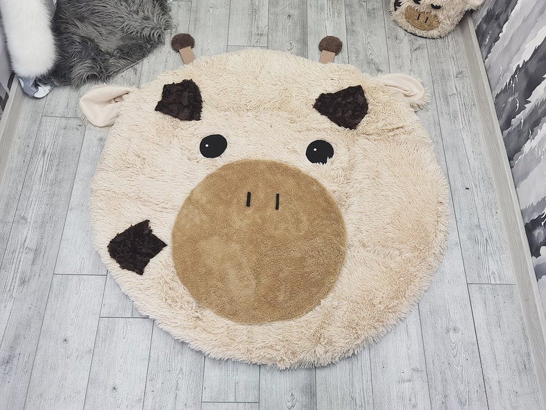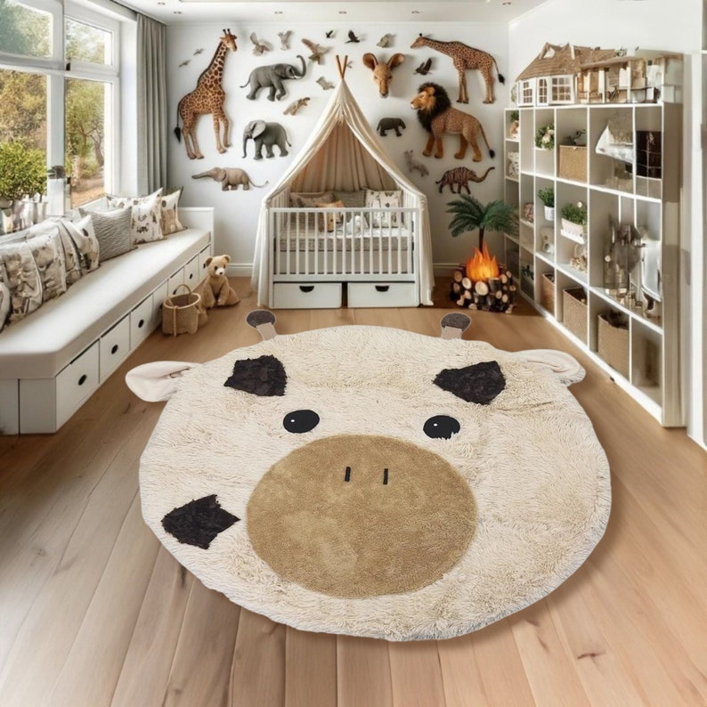 Thamboa Thảm Chơi Hươu Cao Cổ Tròn Lông Kem Cá Nhân Hóa 114 cm