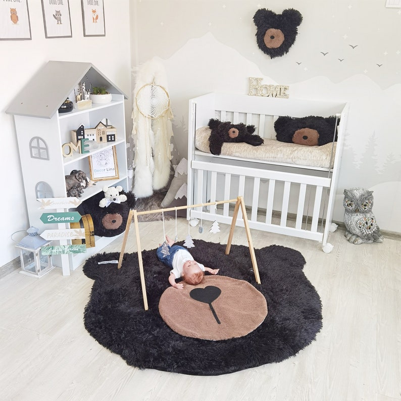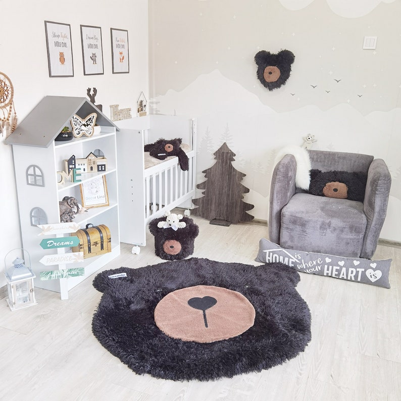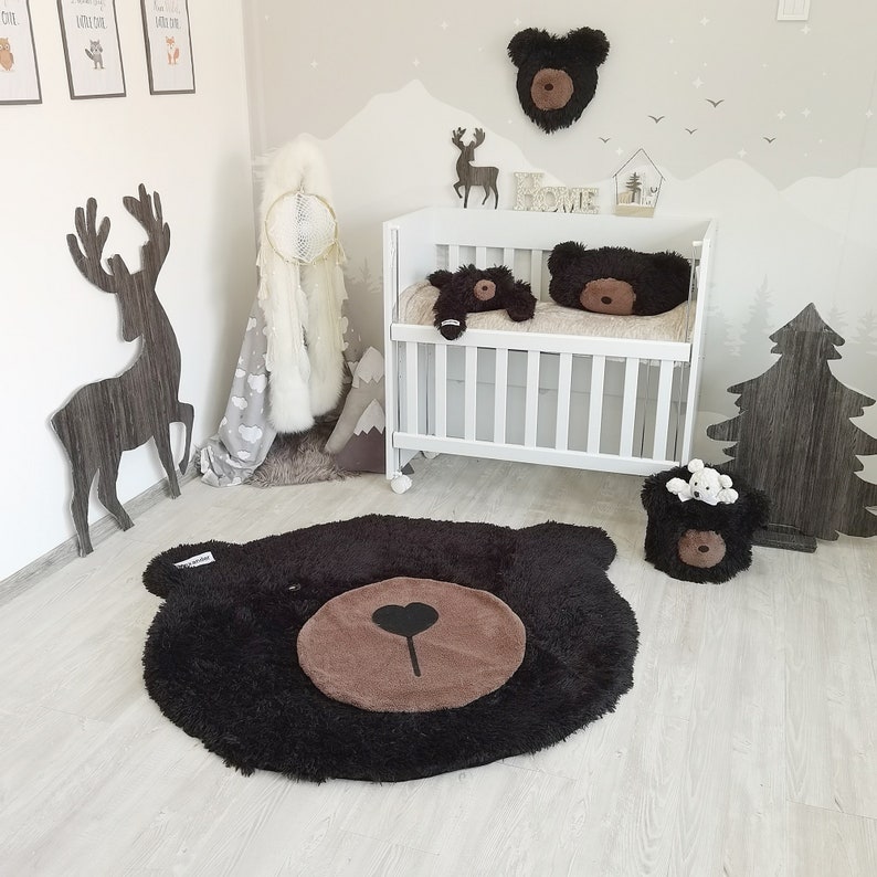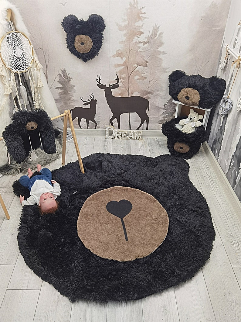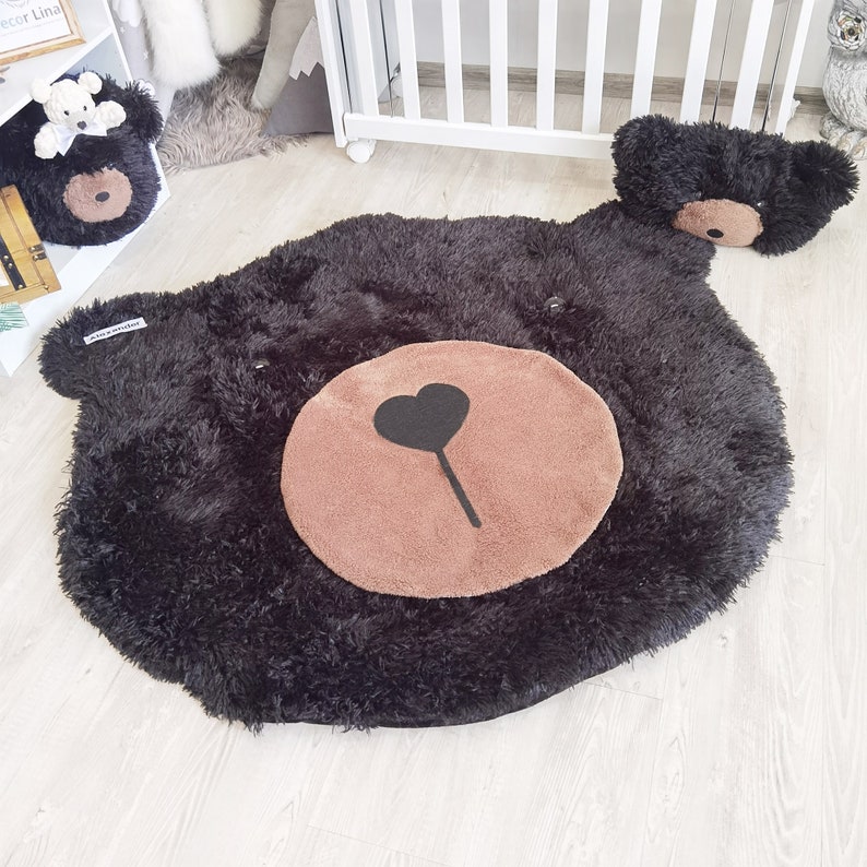 Thamboa Thảm Lót Sàn Lông Xù Hình Gấu Nhồi Bông Đen