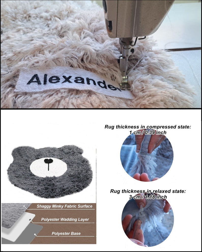 - Chất liệu cao cấp: Thảm được làm từ vải lông Minky shaggy siêu mềm mại, không gây dị ứng và an toàn cho làn da nhạy cảm của bé. Lớp lót bằng vải polyester ở mặt sau giúp thảm bền chắc, giữ form dáng tốt.